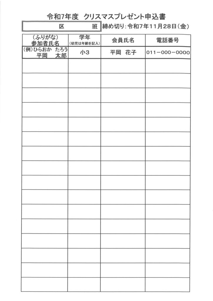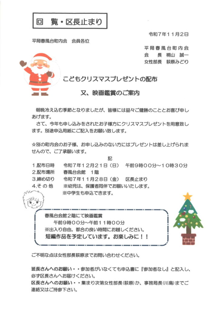こどもクリスマスプレゼントの配布又、映画鑑賞のご案内 2025年12月21日(日)9:00~
