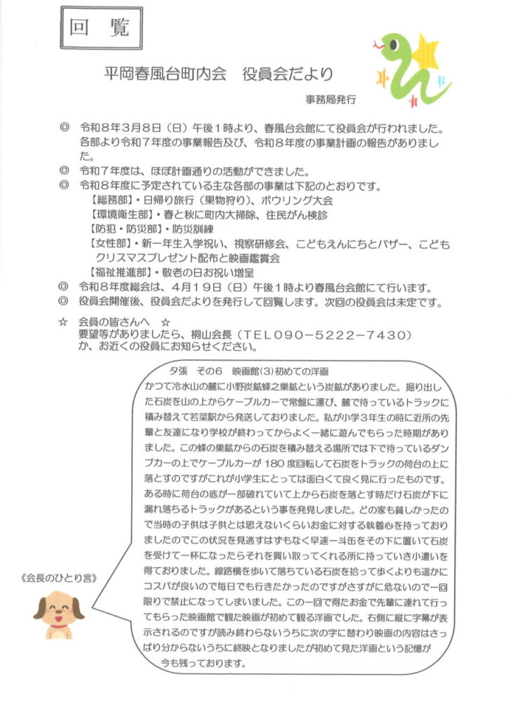 平岡春風台町内会 役員会だより 2026年3月号
