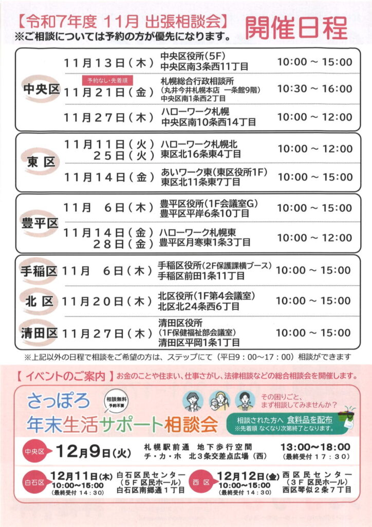 ステップから相談会のご案内 2025年11月27日(木)10:00~