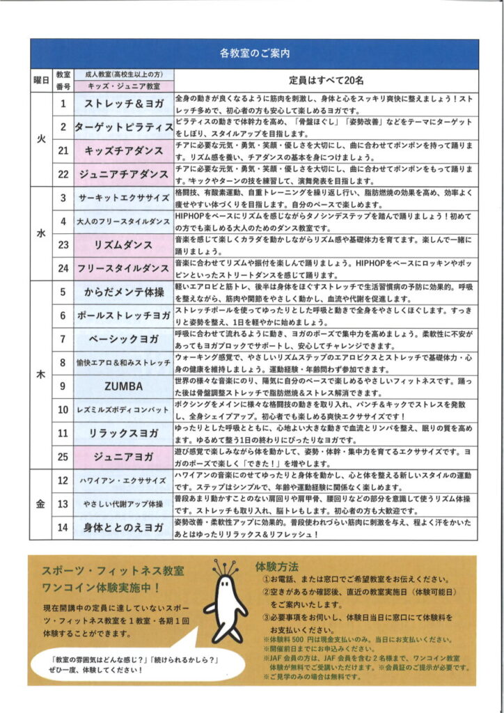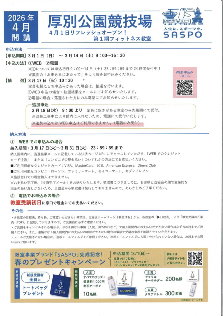厚別公園競技場 第1期フィットネス教室 2026年4月開講
