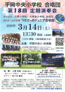 平岡中央小学校合唱団 第18回定期演奏会 2026年3月14日(土)13:30~