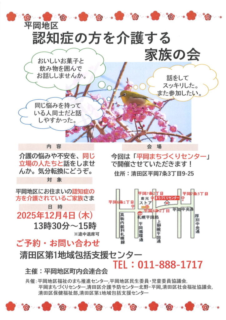 平岡地区 認知症の方を介護する家族の会 2025年12月4日(木)13:30~
