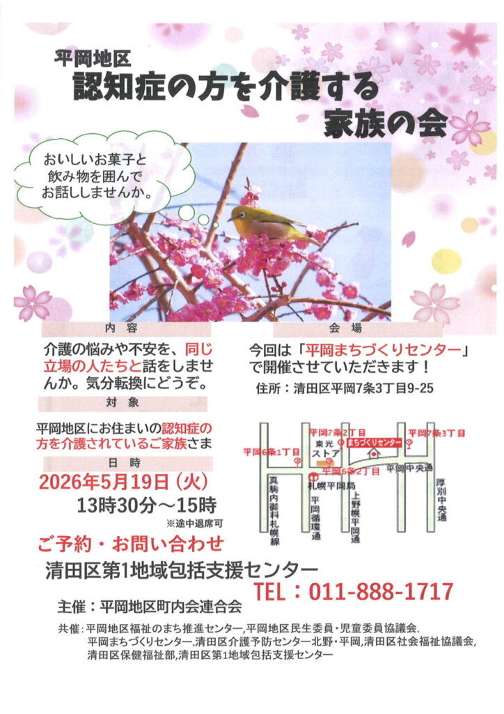 平岡地区 認知症の方を介護する家族の会 2026年5月19日(火)13:30~