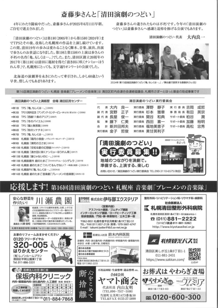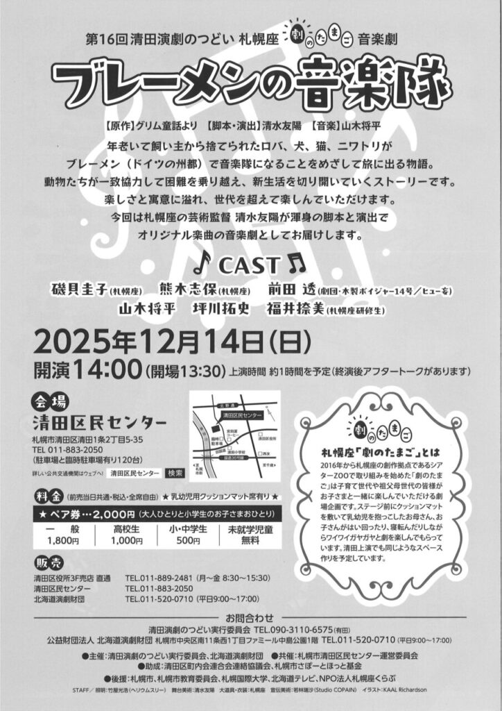 第16回 清田演劇のつどい 札幌座劇のたまご音楽劇 2025年12月14日(日)14:00~