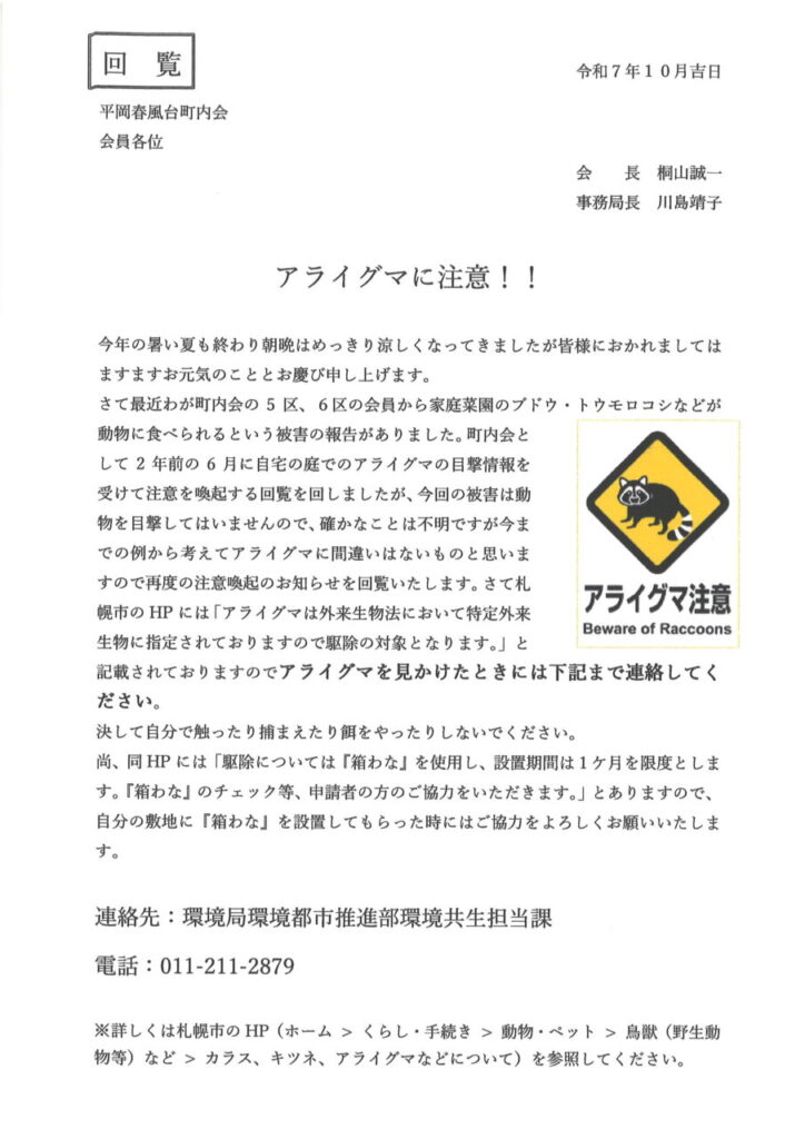 アライグマに注意!!